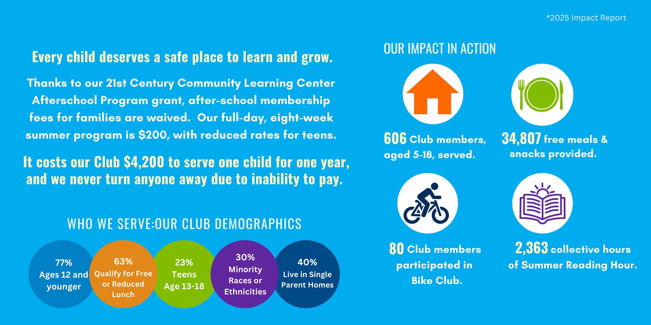 Your gift—no matter the amount—has the power to change a child’s life. It helps provide a safe space, caring mentors, and the opportunities every child deserves to dream, grow, and succeed.